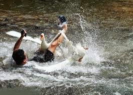والأوز يعشق الماء لذا تجده بكثرة حول الترع القريبة من المنازل ويصحب أفراخه لتدريبهم على نزول الماء والعوم فيها